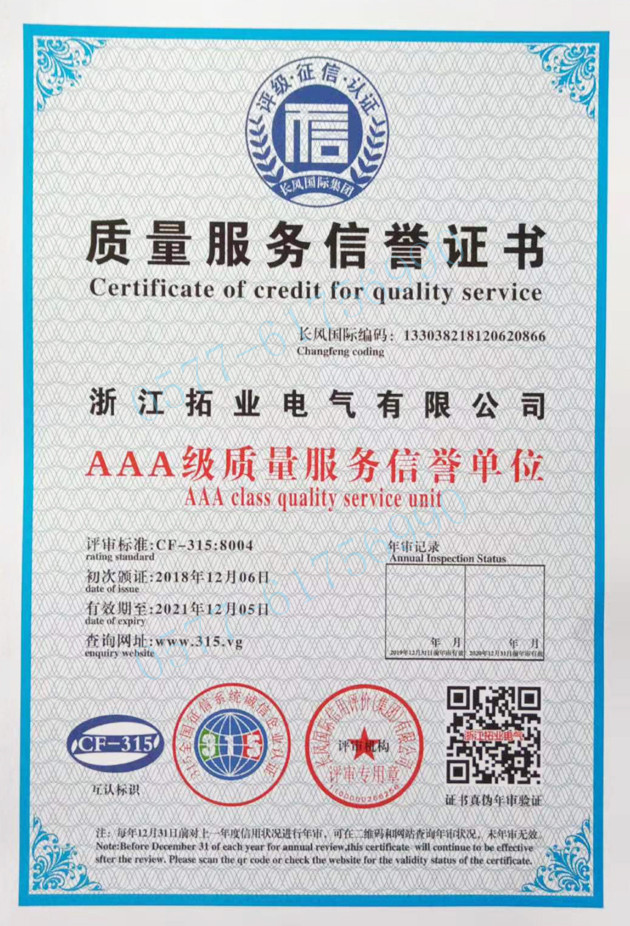 • 拓業電氣公司認為為國家、為社會、為客戶創造價值就是我們的存在價值。更管用、更耐用、更安全、更可靠,是我們質量管理的基本原則,我們通過努力為合作伙伴創造價值,才能體現自身的價值并獲得發展和成功......
